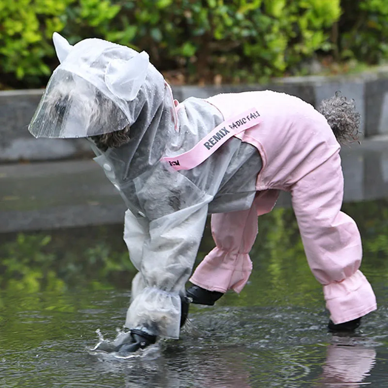 Pet Dog Cute Raincoat Puppy Four Feet Hooded Transparent Waterproof Teddy Poodle Large Dog Rain Out Clothes For Animals Pet Raincoats Aliexpress